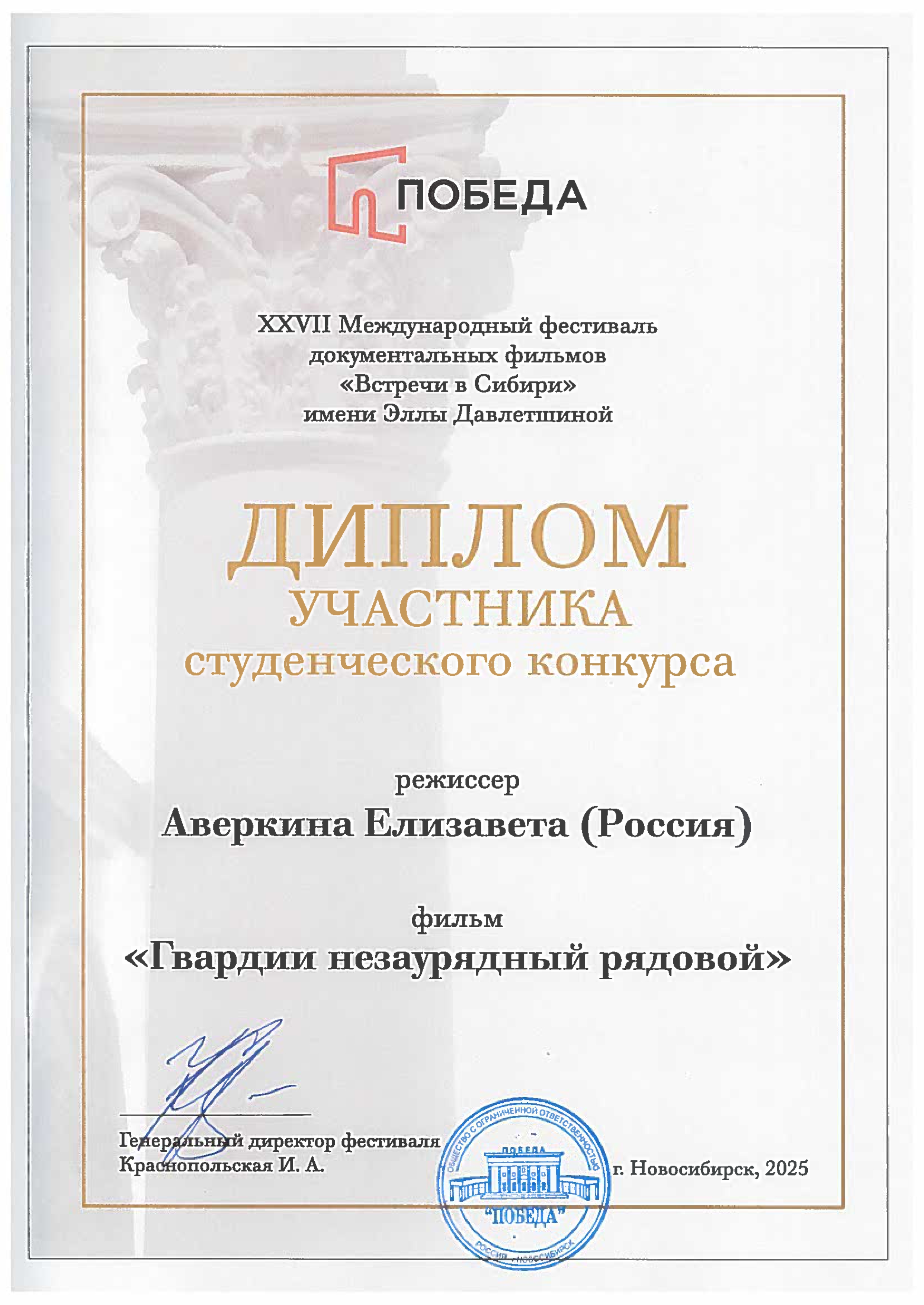 Областной конкурс видеоработ, "Гвардии Рядовой",